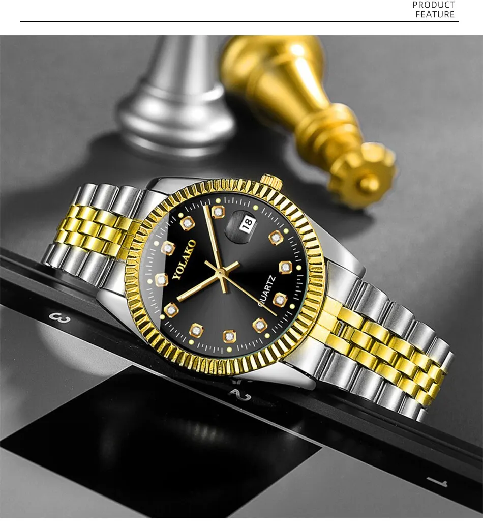 The YOLAKO Diamond Calendar Watch combines timeless elegance with modern craftsmanship — the perfect accessory for the confident, business-minded gentleman.